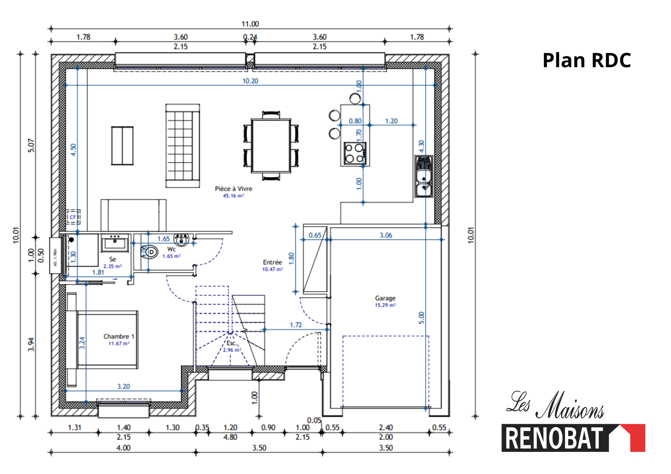 Les Maisons RENOBAT, constructeur depuis 1996, vous propose à la vente une maison NEUVE de 2025 de type R + 1 avec toit plat, située en lot arrière, au calme dans un secteur pavillonnaire sur la commune de MONTLHERY.